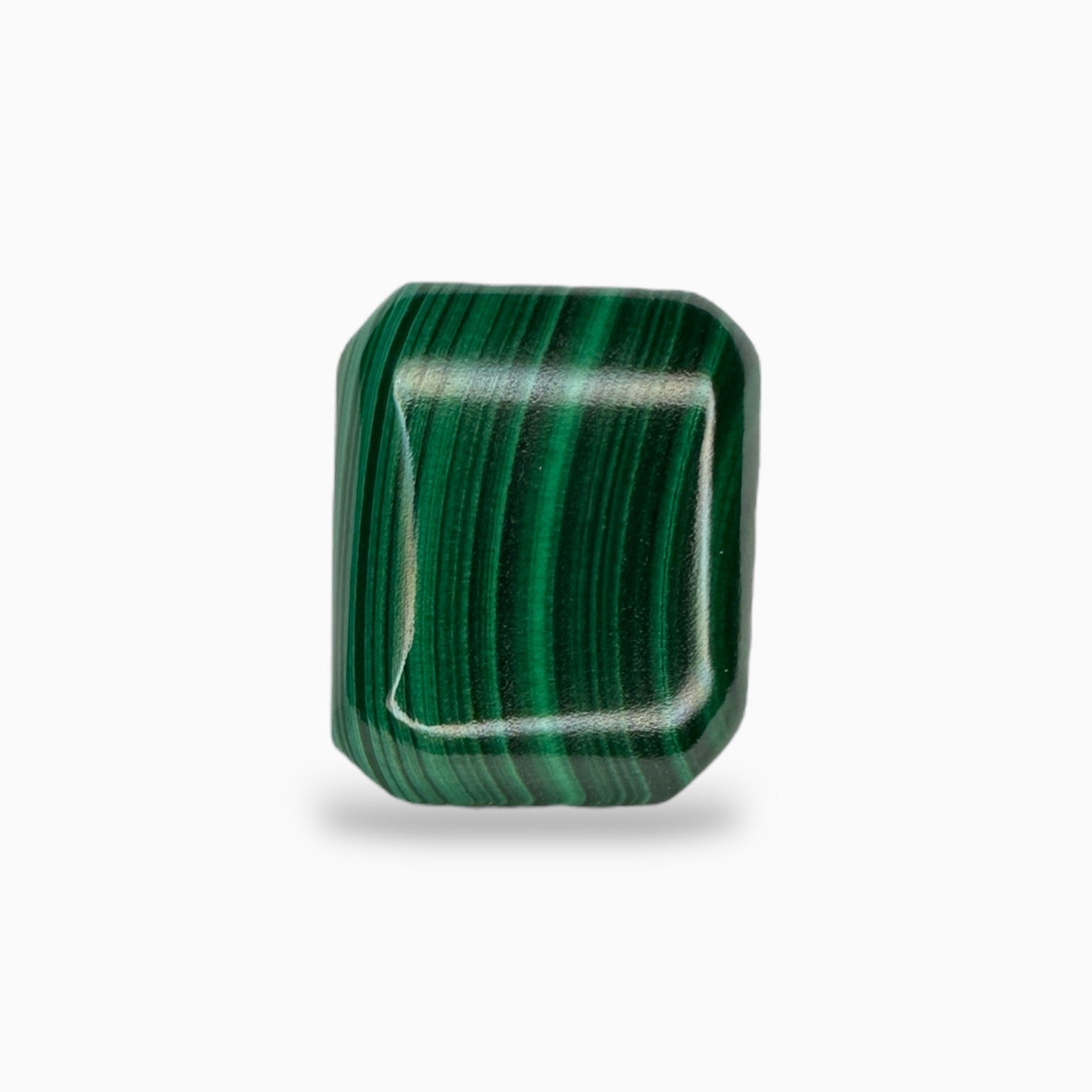 Malachite stone is an opaque green gemstone with a unique banded pattern. It is not transparent like emerald and has a much softer surface. Malachite is often used for decorative objects and jewelry because of its interesting patterns, but it is much less durable than emerald and can easily be scratched or damaged.