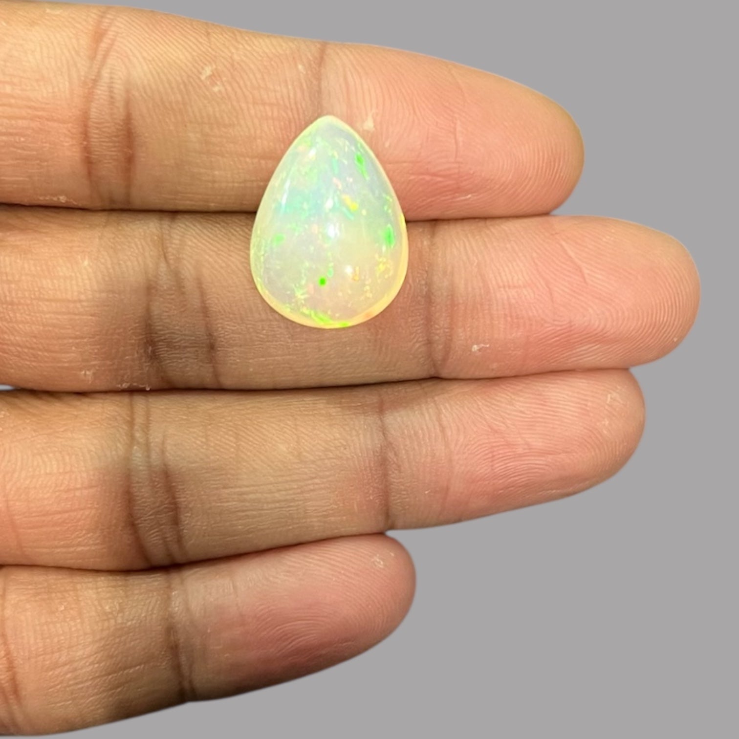 Natural White Color Ethiopian Opal Stone 12.88 Carats Pear Cabochon Shape 20.1 x 15.1 x 9.7 mm