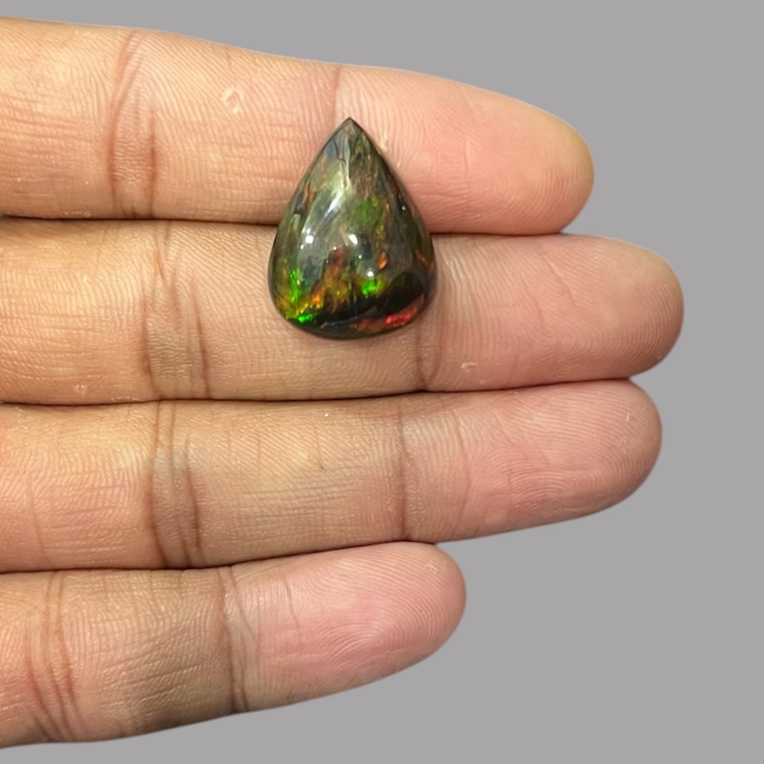 Natural Black Ethiopian Opal Stone 14.08 Carats Pear Cabochon Shape Size 22.2 x 17 x 9.7 mm