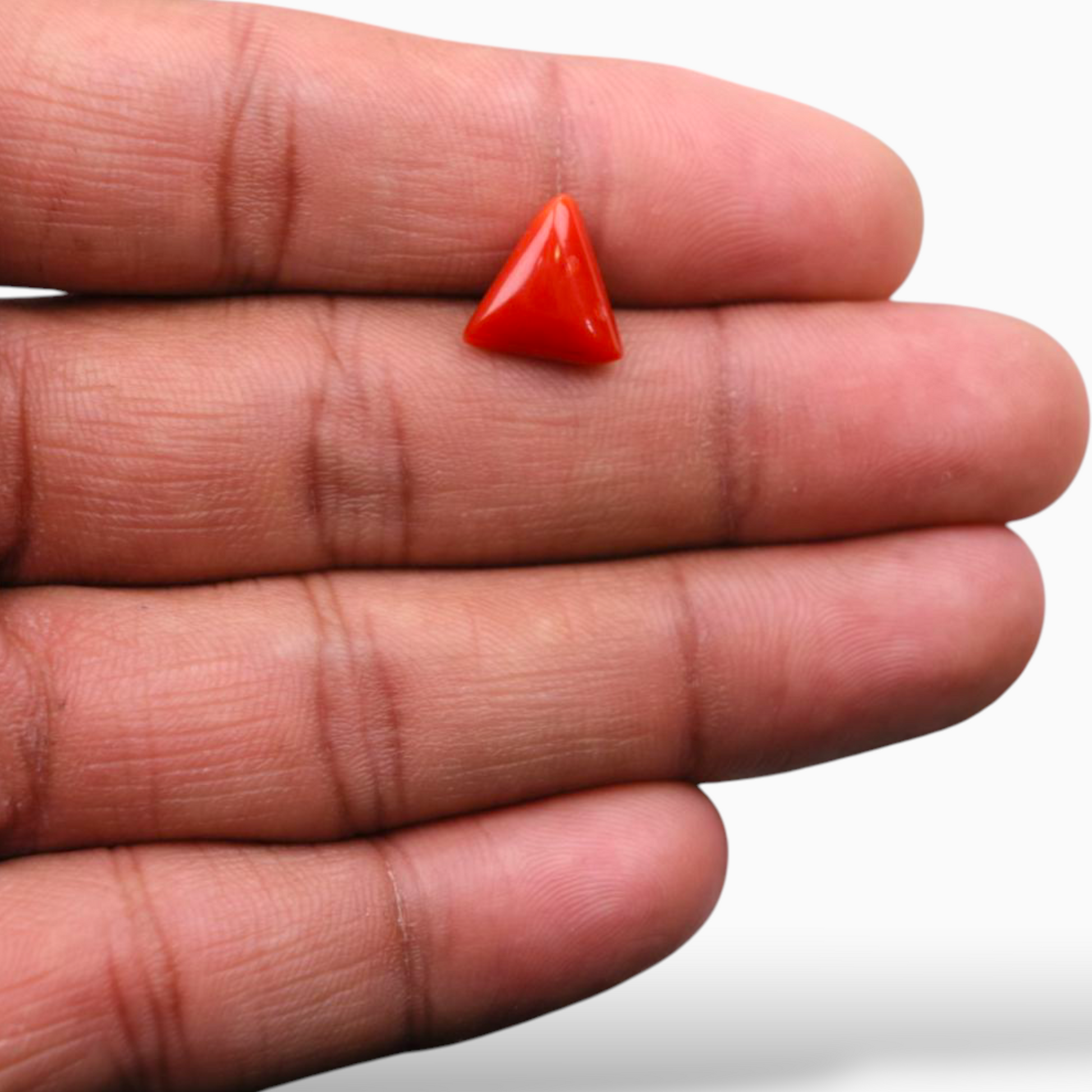 Coral Moonga Stone For Sale 3.18 Carats Triangle Shape Size 11mm