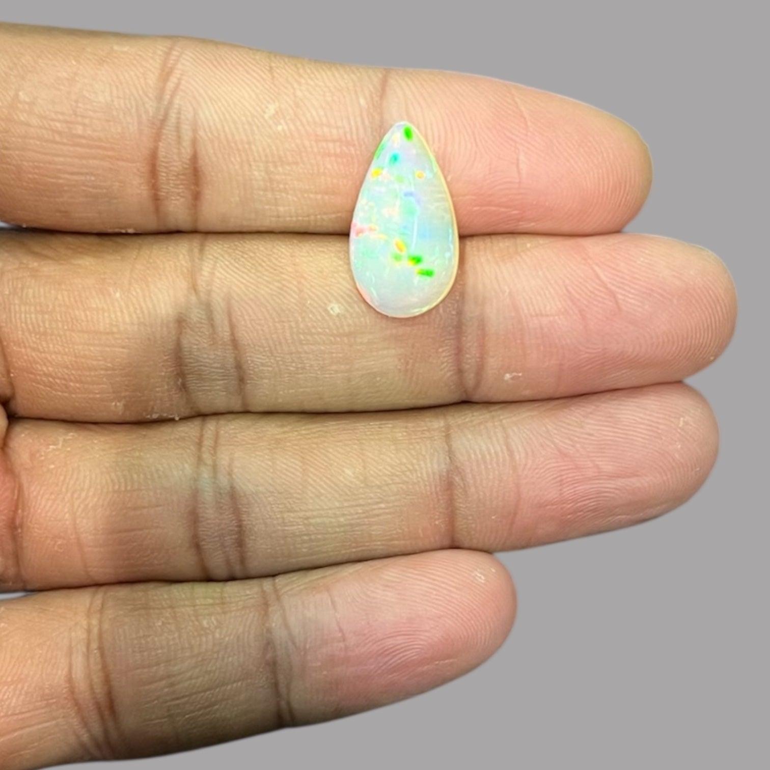 Natural White Color Ethiopian Opal Stone 4.63 Carats Pear Cabochon Shape 18.8 x 10.6 x 5.2 mm