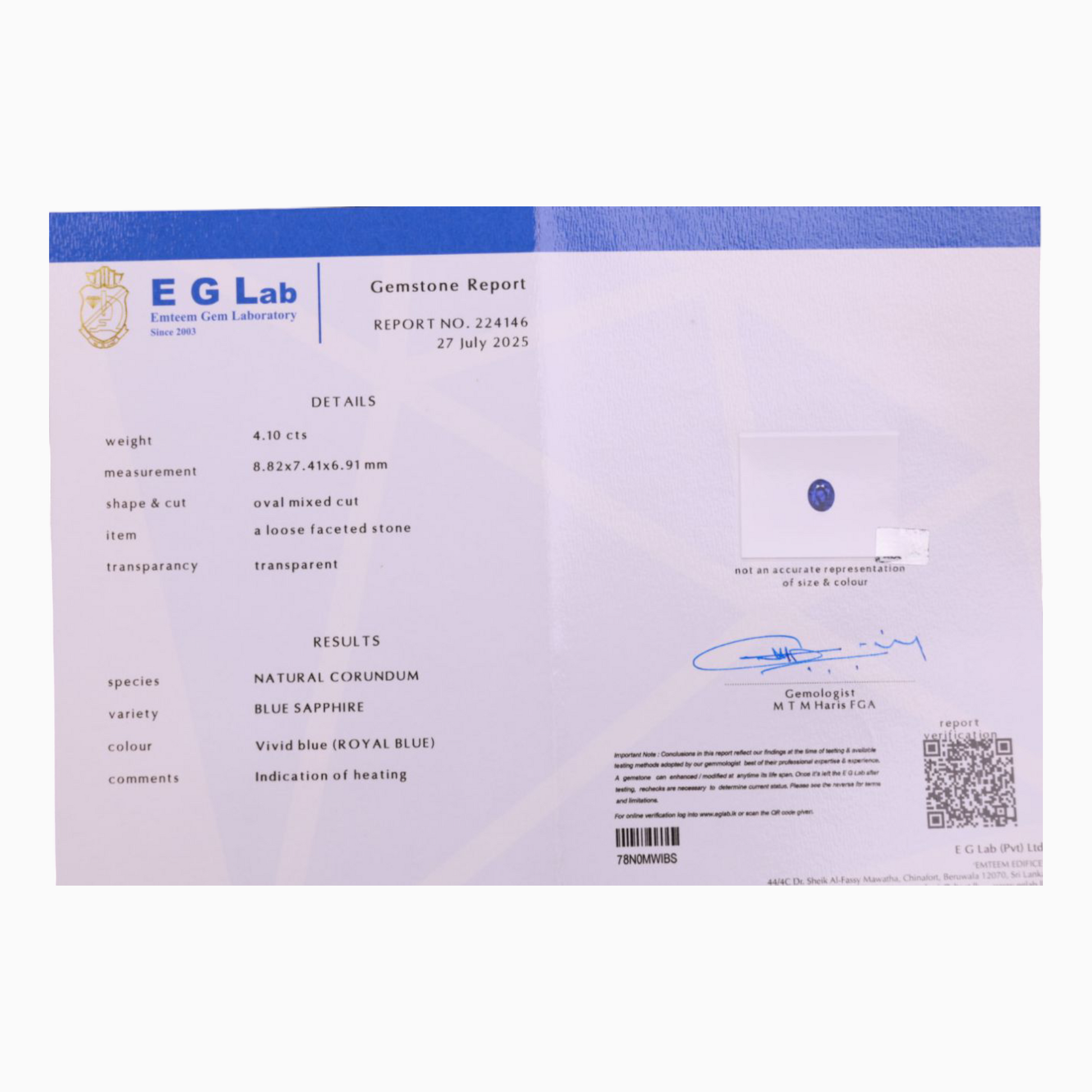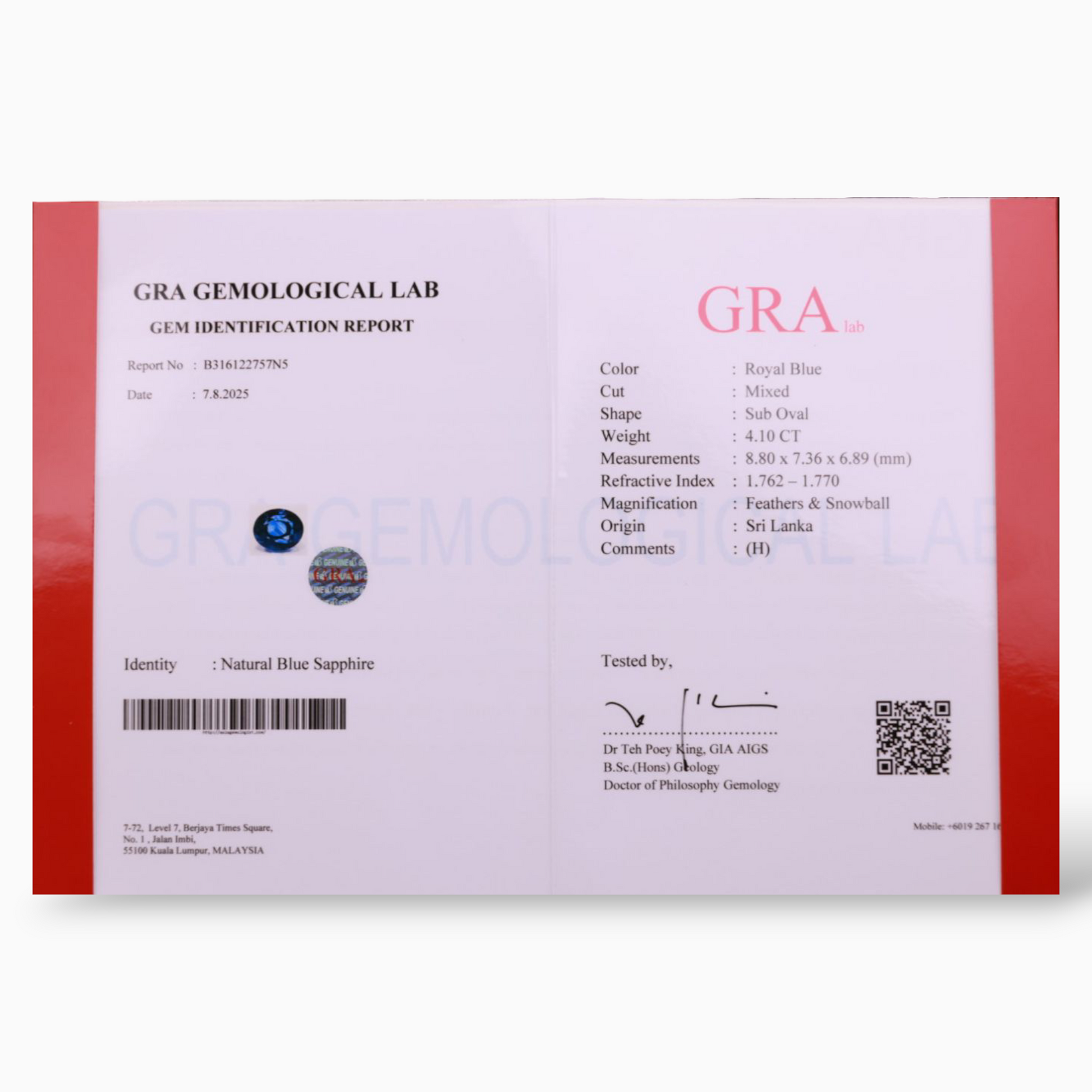 • Certified by GRA GEMOLOGICAL LAB :8316122757N5, CGTL No: CGTL250716151948, EG Lab: 224146