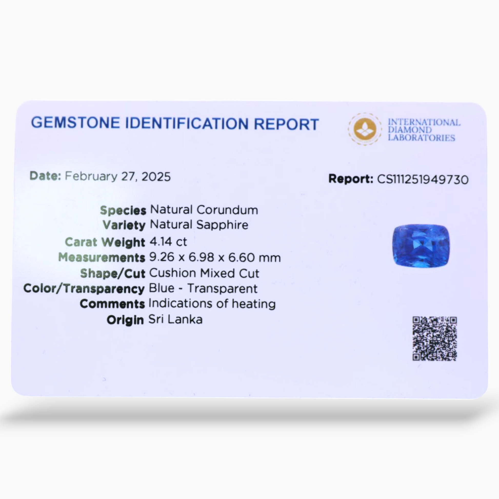 Natural Blue Sapphire 4.14 Carats Cushion Shape 9.26x6.98x6.60mm Size Certified By IDL